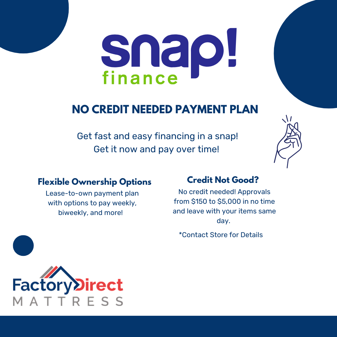 - Only $10 Down – Get approved and take home your mattress today with just a $10 initial payment!
